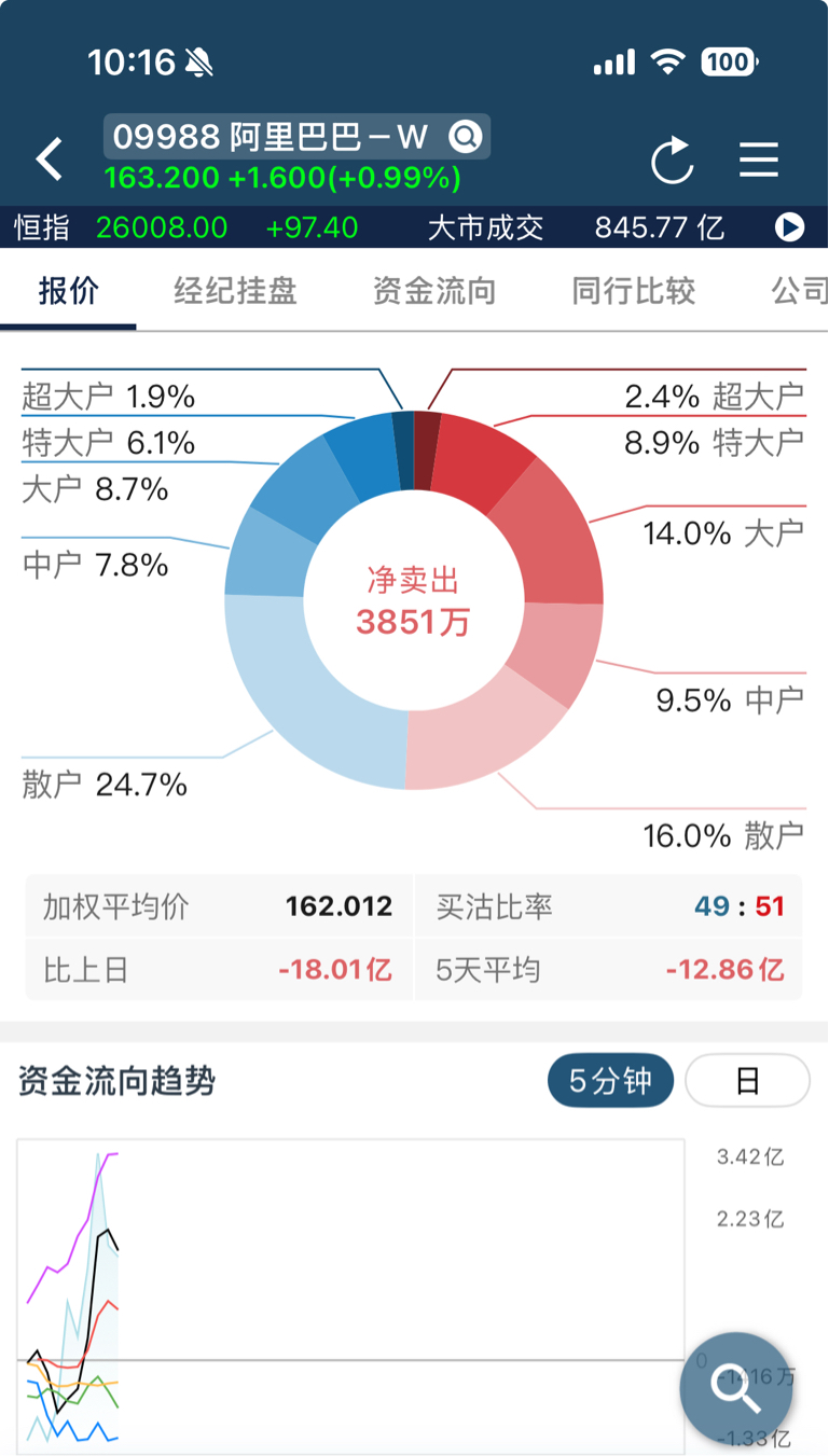 $阿里巴巴-W(HK|09988)$ 少量卖出