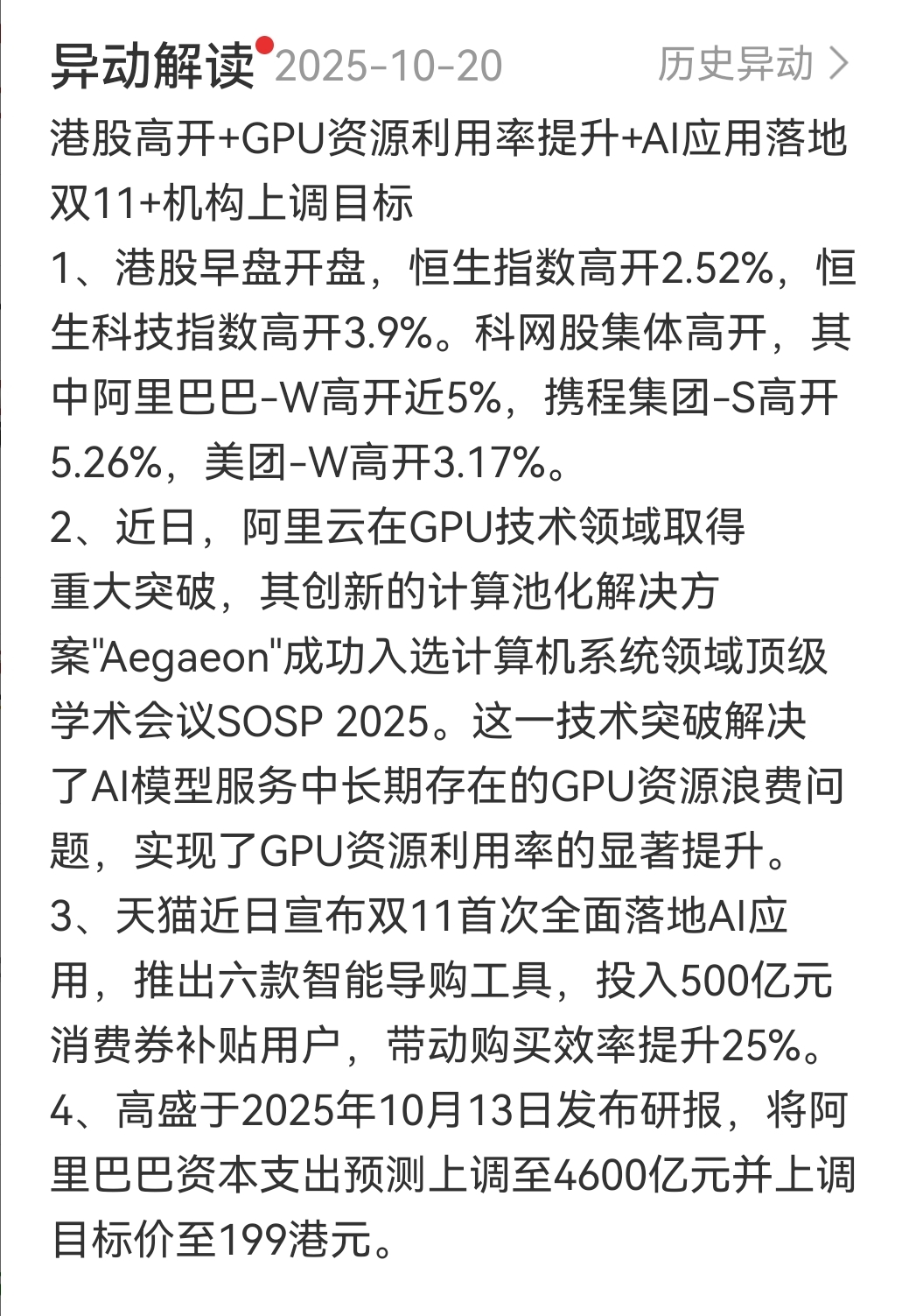 $阿里巴巴-W(HK|09988)$ 今天阿里巴巴-W异动的原因。