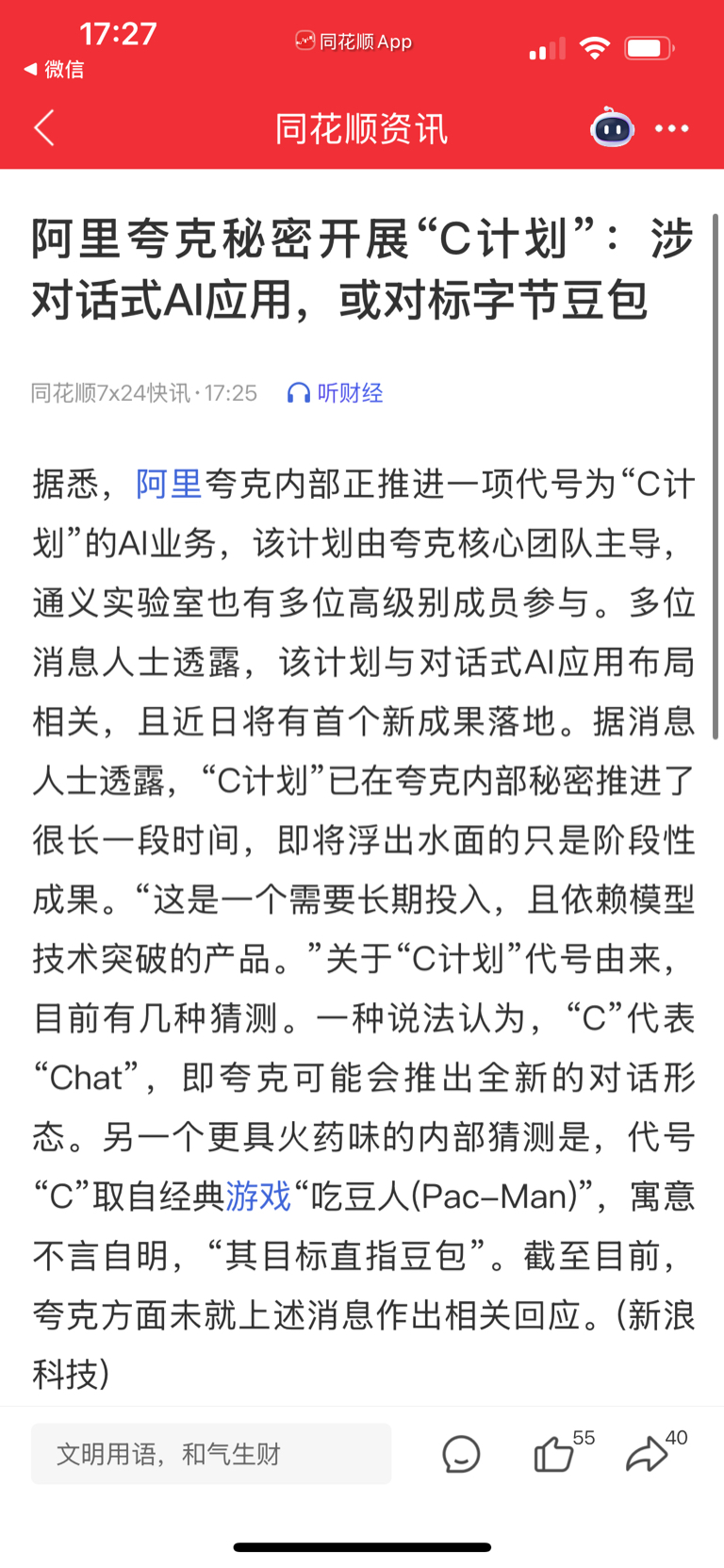 夸克本身就是阿里在智能搜索和信息服务领域的重要棋子,拥有一定的用户基础。将先进的对话式AI能力整合进夸克,可能打造出更强的“搜索+问答+工具”的超集应用,想象空间巨大,有望提升夸克乃至整个阿里创新业务的估值!