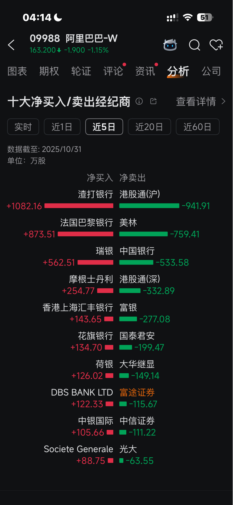 $阿里巴巴-W(HK|09988)$ 别怪人家外资到底是谁在砸一目了然
