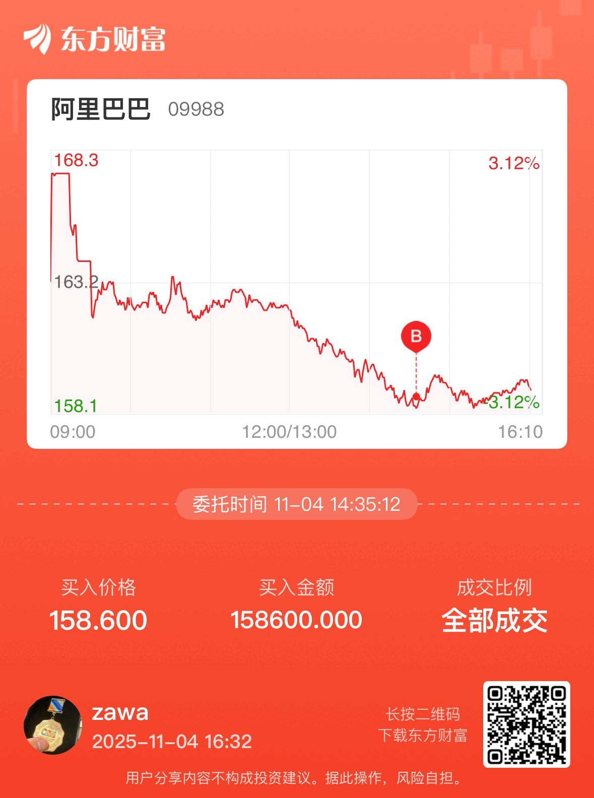 $阿里巴巴-W(HK|09988)$ 个人感觉这里是一个带止损的入场点,而不是卖出点