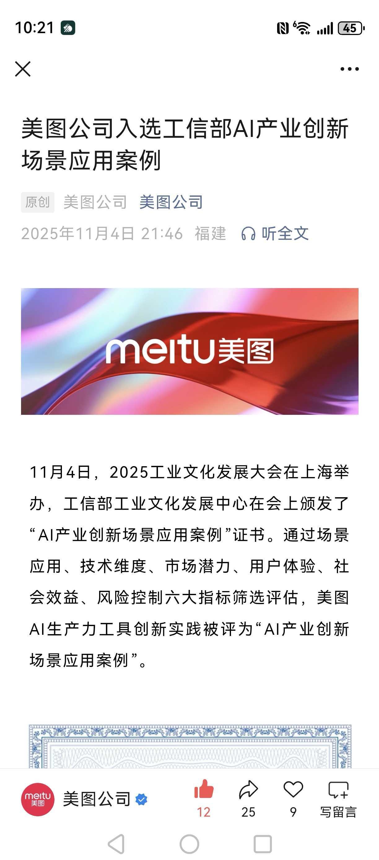 重磅消息,美图Ai应用创新场景先拔头筹,美图公司入选工信部AI产业创新场景应用案
