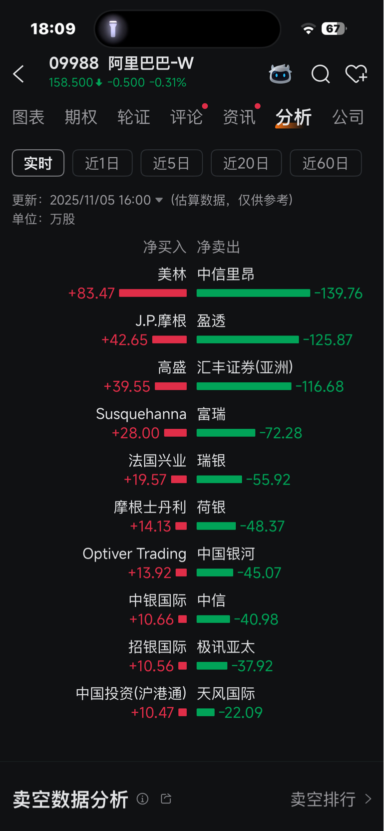 $阿里巴巴-W(HK|09988)$ 内资今天少砸一点都红了