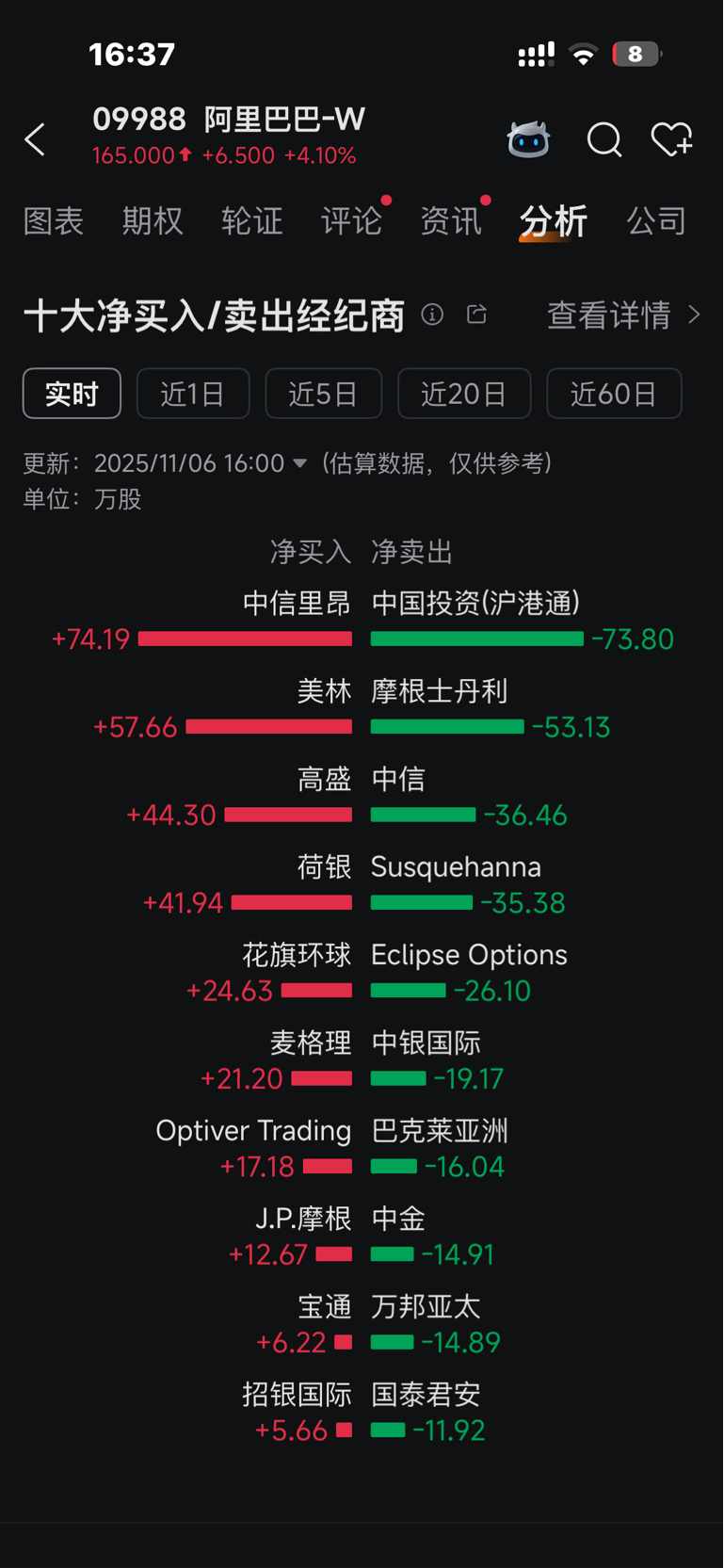 $阿里巴巴-W(HK|09988)$ 今天散户疯狂出