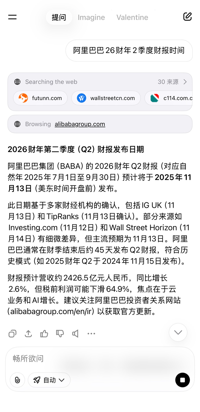 $阿里巴巴-W(HK|09988)$ 来自grok的财报时间美股盘前9月13号发布