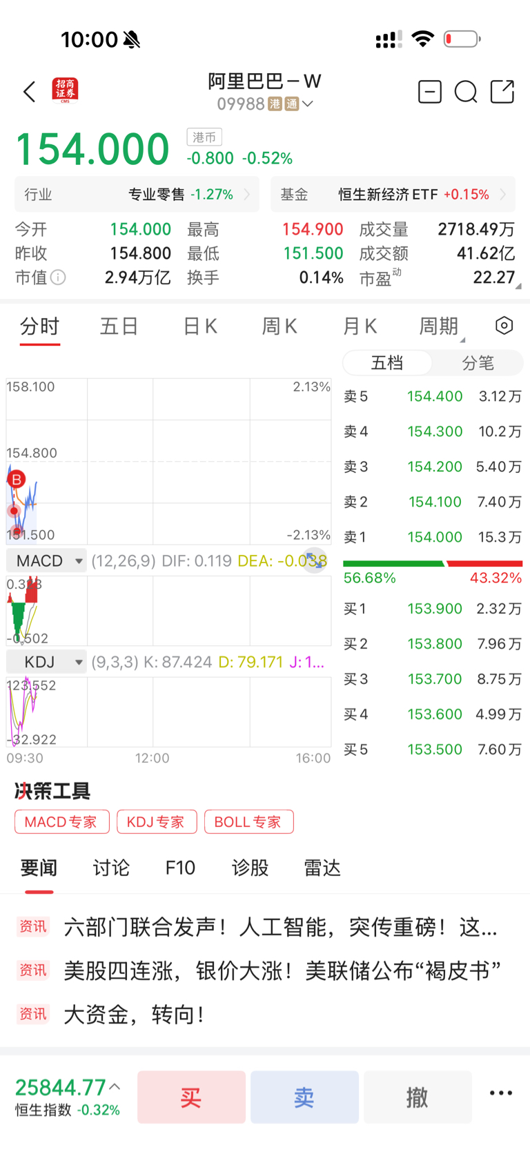 $阿里巴巴-W(HK|09988)$ 今晚美股停盘,港股独自走一波?哈哈哈明天做T