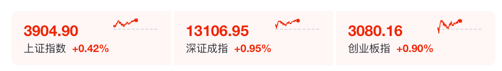 截至午间收盘,沪指涨0.42%,深证成指涨0.95%,创业板指涨0.9%。