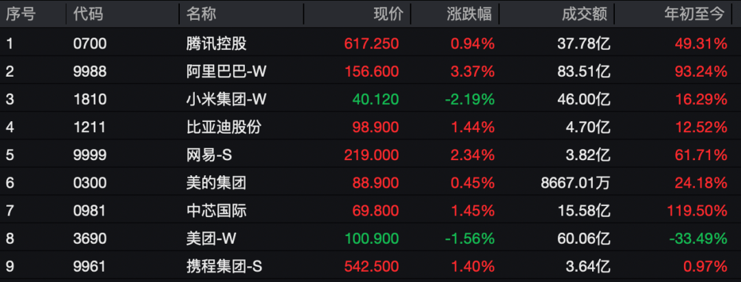 港股方面,截至发稿,恒生科技指数日内拉涨1%,恒生指数、恒生中国企业指数上涨。个股方面,阿里巴巴涨超3%,网易、中芯国际、携程集团、比亚迪股份、腾讯控股等纷纷上涨。