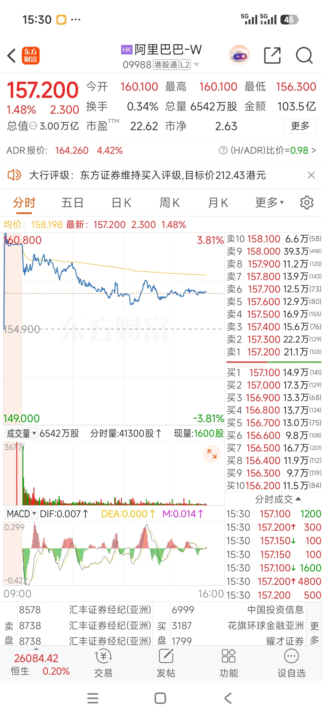 $阿里巴巴-W(HK|09988)$ 我感觉有人一直就盯着我,每天在我的成本线上下摩擦
