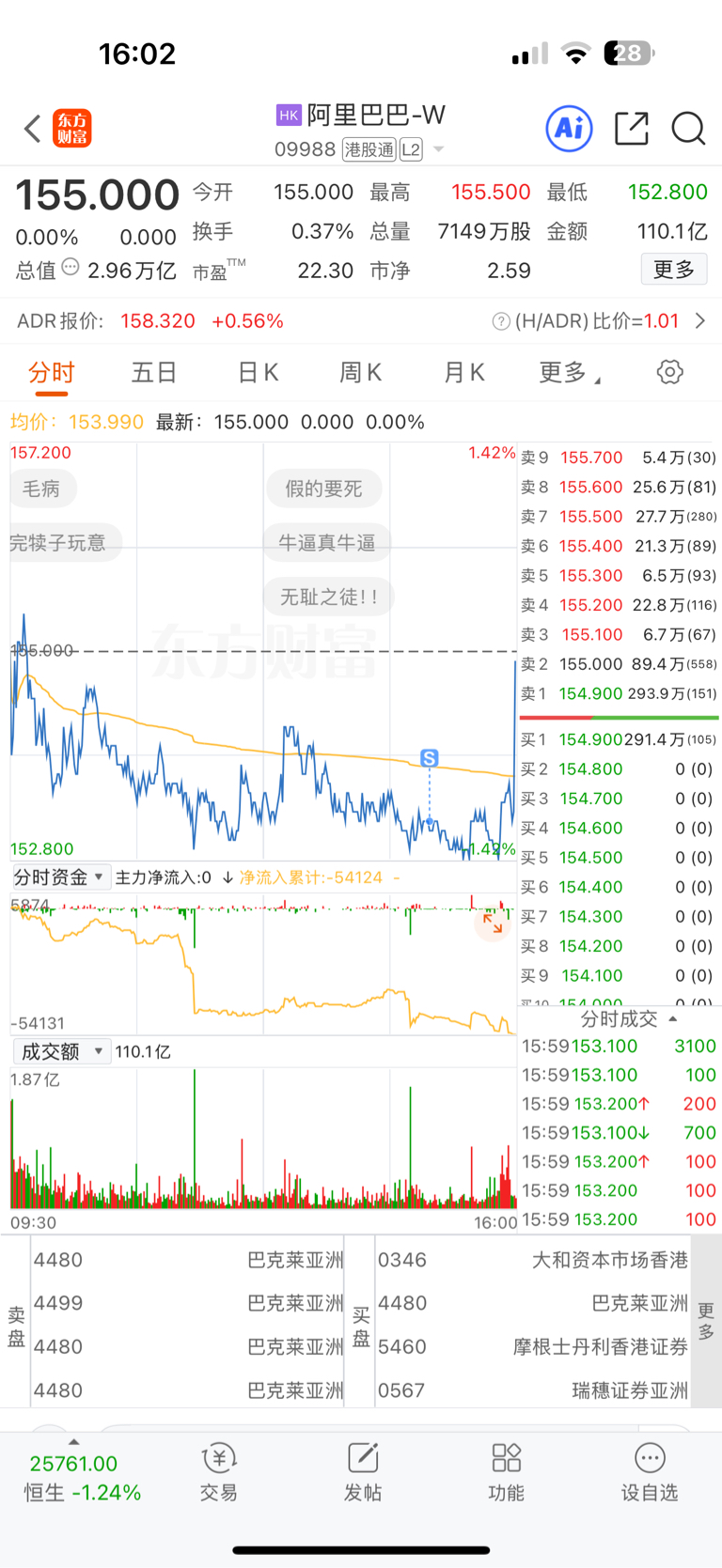 $阿里巴巴-W(HK|09988)$ 看着都觉得恶心,卖了