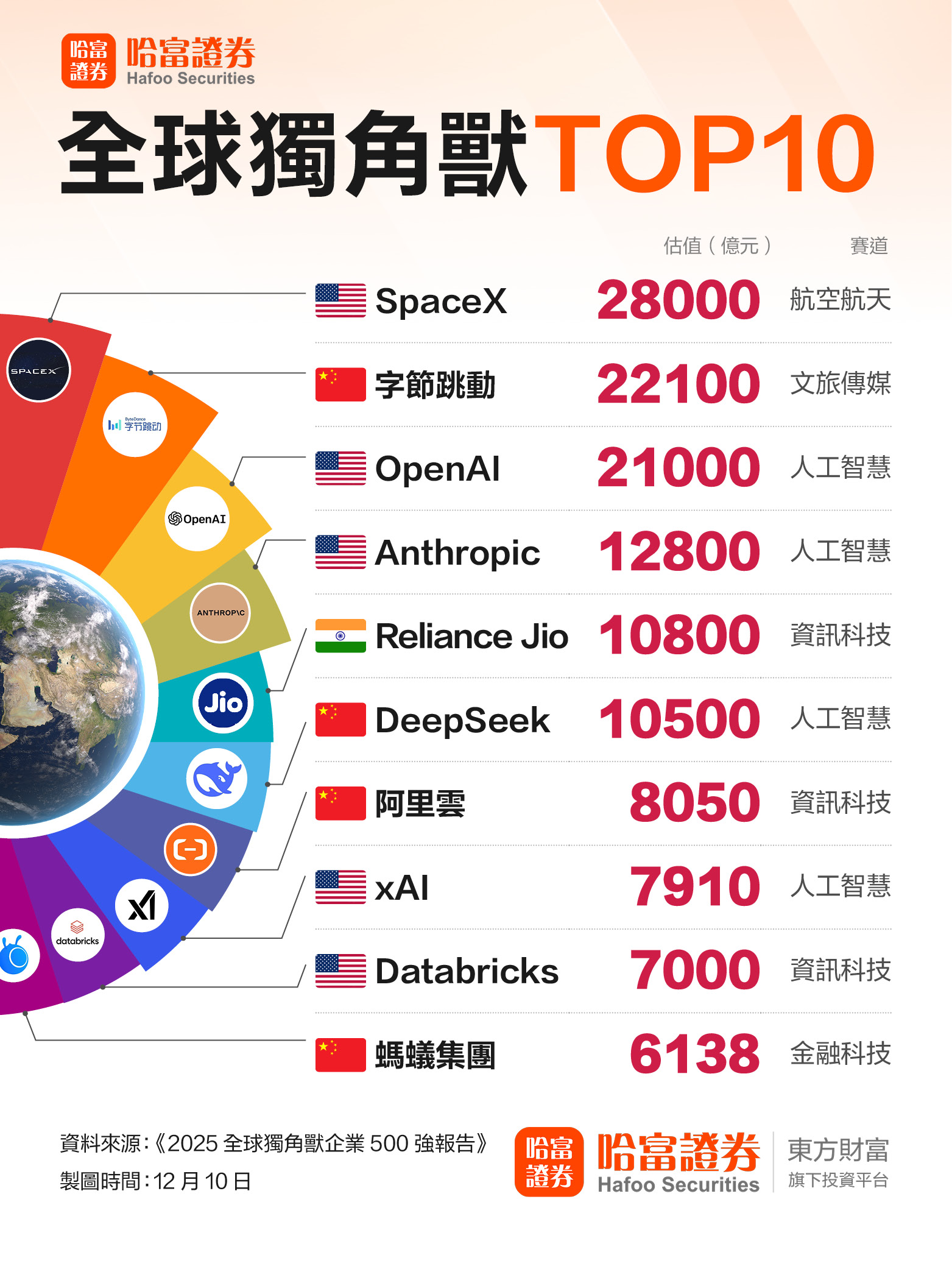 全球独角兽500强出炉!SpaceX排第一 四家中国企业挤进前十