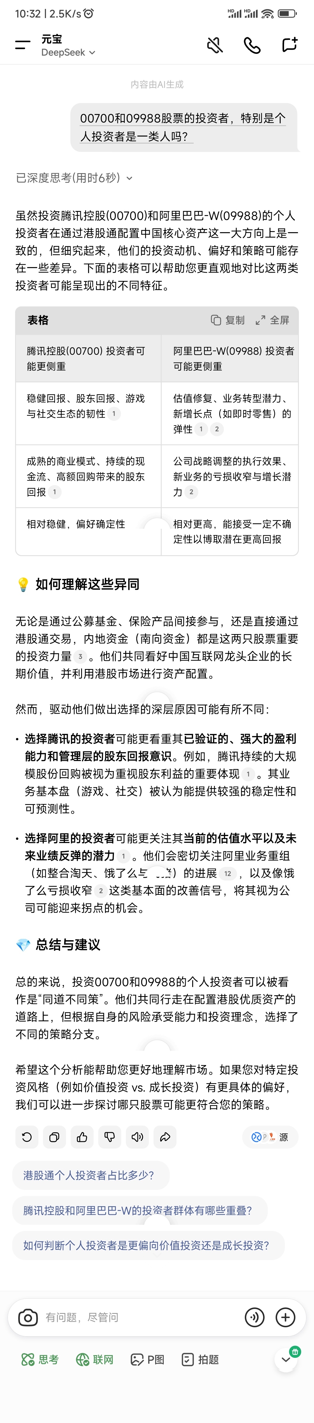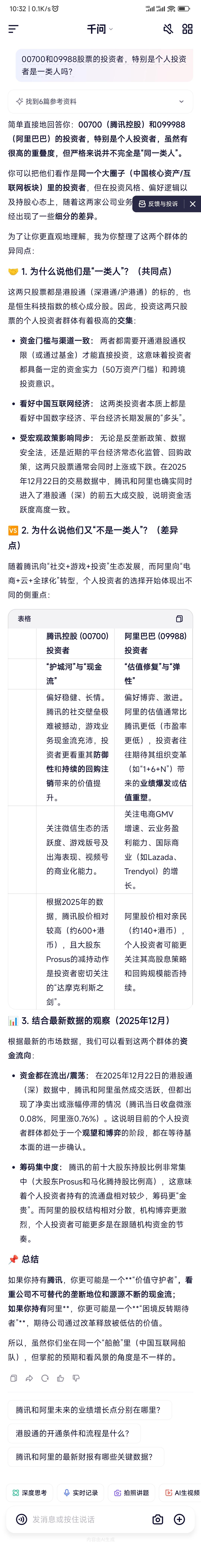 00700和09988股票的投资者,特别是个人投资者是一类人吗?