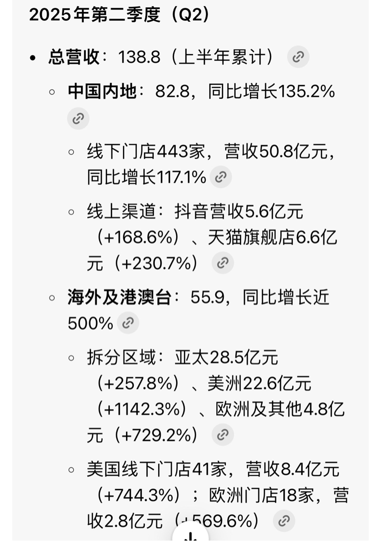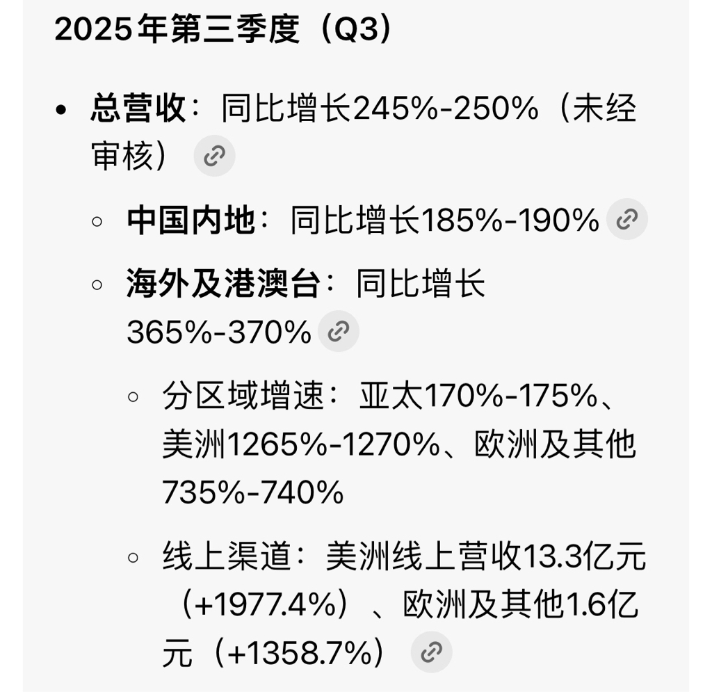 $泡泡玛特(HK|09992)$ 个人观点:潮玩需要持续维持它的热度,才能有高溢价的收益,但是一直维持高热度也是不现实的,三季度的业绩详细数据没出来,根据豆包给的数据高增长去年基数低也是一部分原因,但就中期报告的数据,个人认为目前的股价比银行定期要好一点。