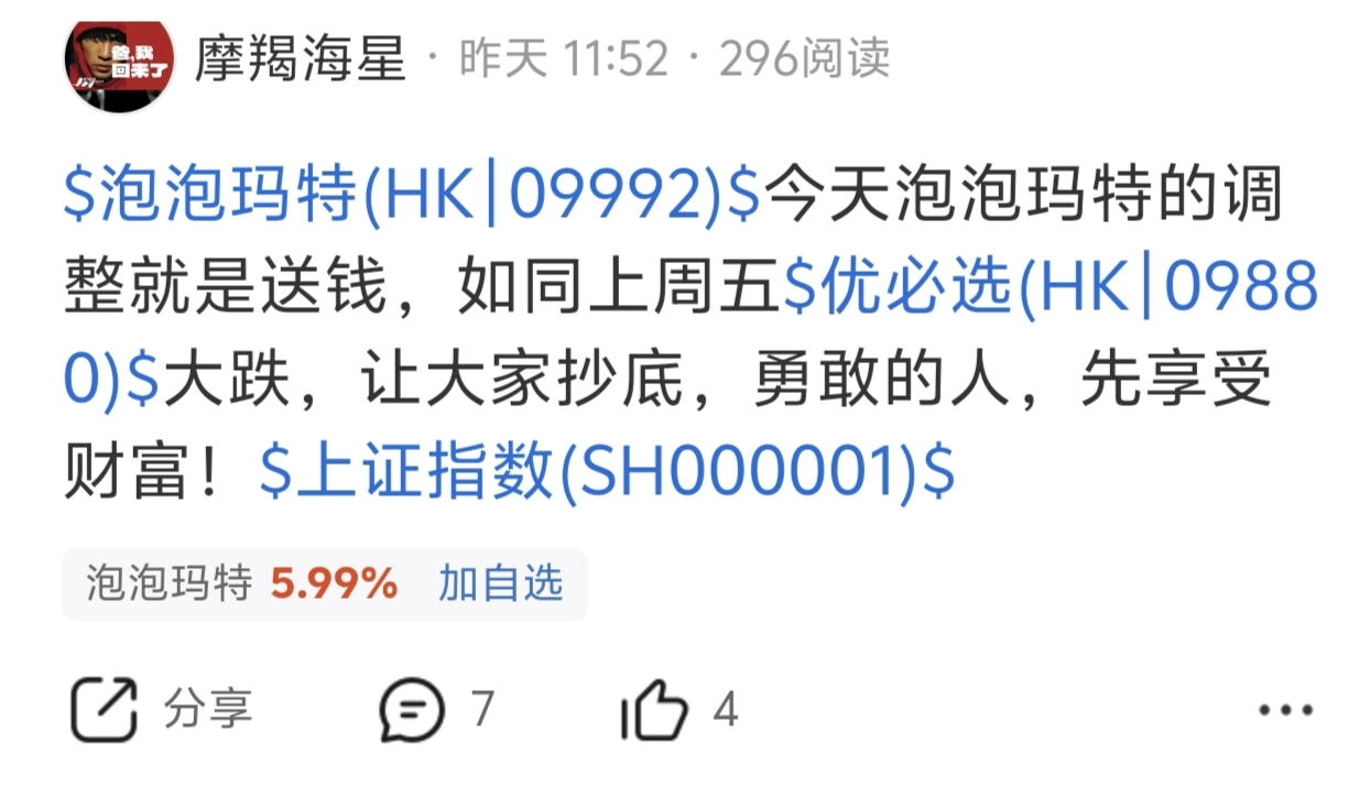 $泡泡玛特(HK|09992)$ 勇敢的人先享受财富,昨天满仓,今天大赚,世界级IP公司 $恒生指数(QQZS|HSI)$ $上证指数(SH000001)$