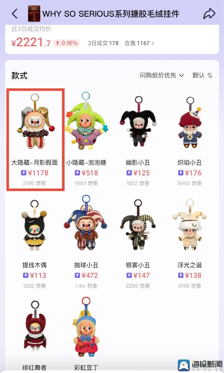 千岛平台数据显示,10月初推出的万圣节“WHY SO SERIOUS”系列盲盒的隐藏款仍然保持高溢价
