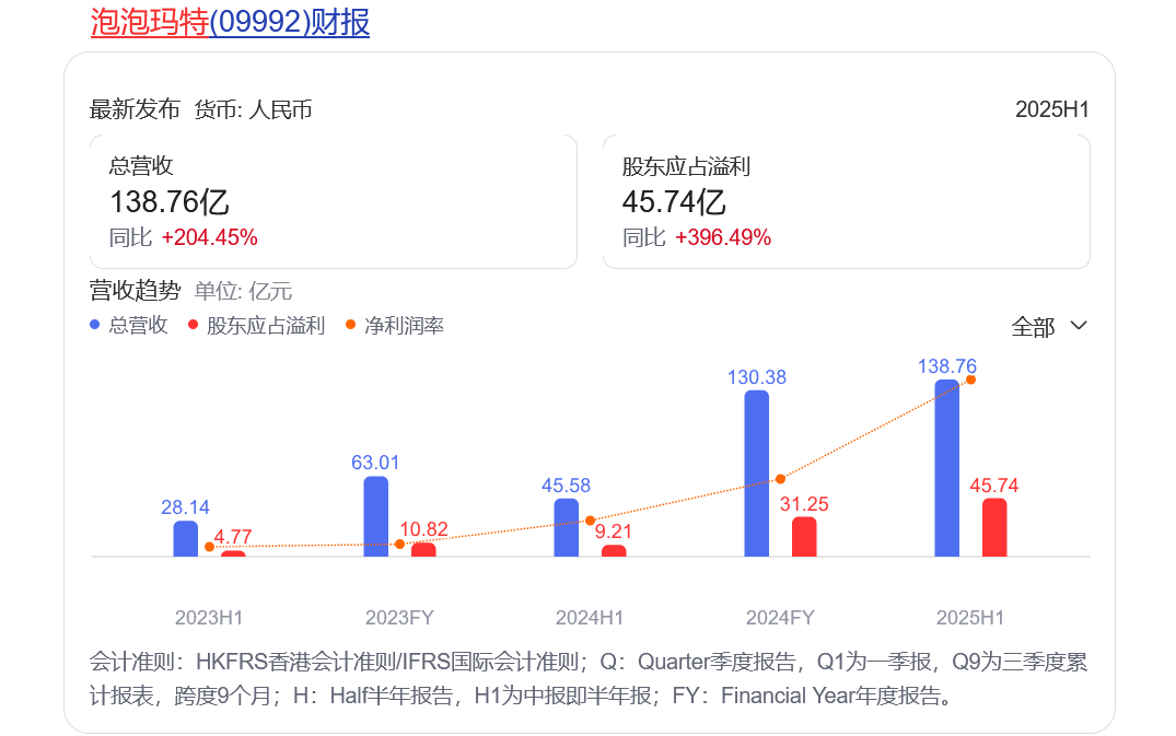 2025 年 中报 实际净利率约 33%,以此推算,Q3 中值收入 146.4亿对应的归母溢利约 48亿,将首次突破 48亿,预测泡泡玛特九个月累计归母溢利约100亿,是 2024 年全年的 2.88倍,利润增速大幅领先收入。