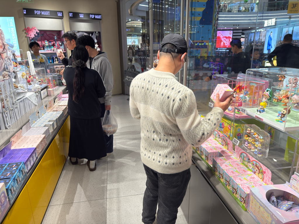 $泡泡玛特(HK|09992)$ “没有调查就没有发言权”!某三、四线城市万达广场的12:30,美妆、服饰、黄金没啥人,反而手办人气挺不错