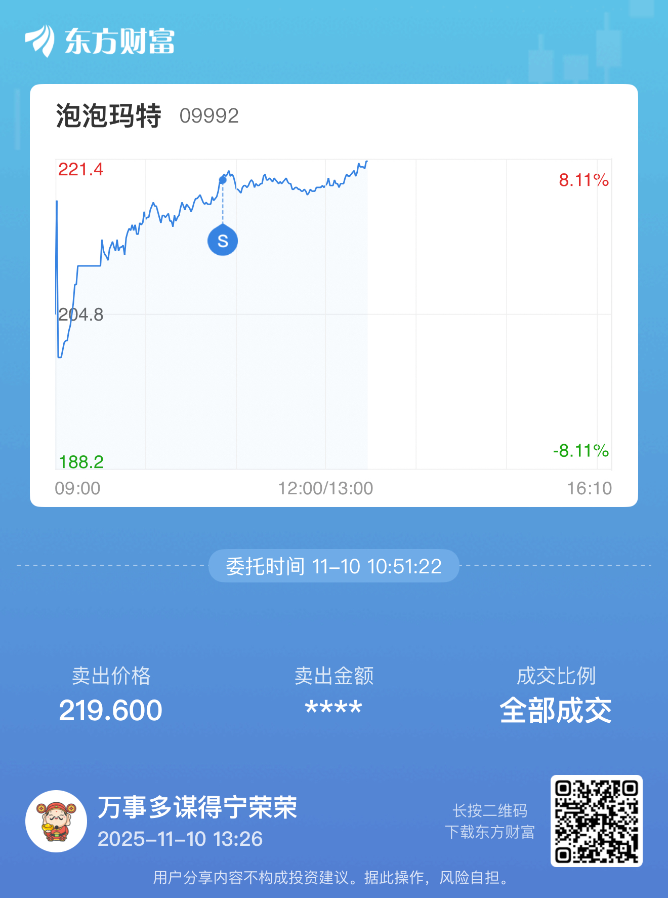$泡泡玛特(HK|09992)$ 我一卖就拉!主力就差我这三瓜两枣?