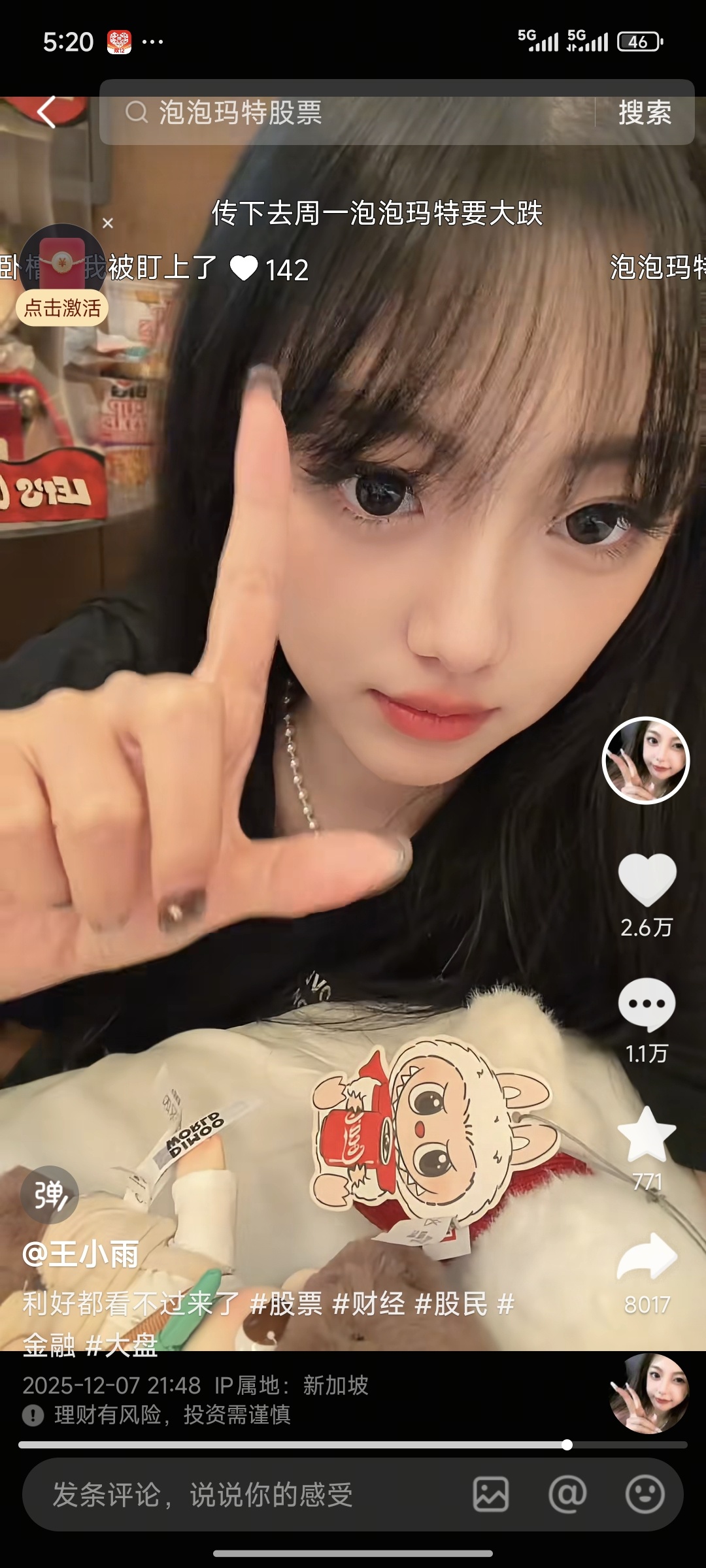 $泡泡玛特(HK|09992)$ 王姐说8个点。