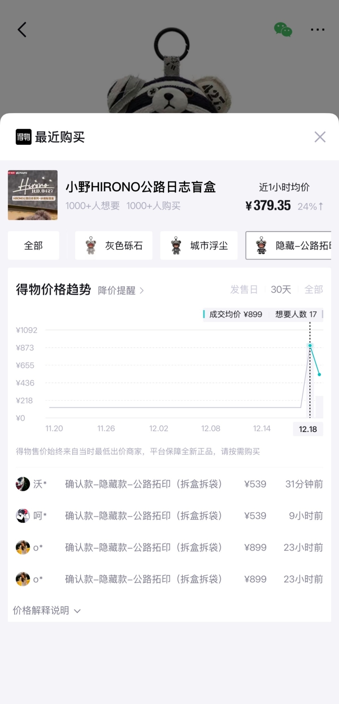 12月18日,泡泡玛特旗下热门IP Hirono小野发布首款毛绒挂件盲盒“公路日志”,新品在得物App秒售罄。得物App数据显示,隐藏款“公路拓印”最高成交价从129元上涨至899元,溢价近6倍。网友表示:手指都按“冒烟”了,根本抢不到。