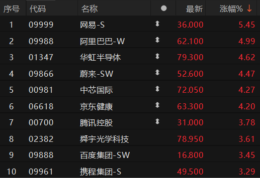 港股异动 | 恒生科技指数涨超3% 网易-S涨逾5%