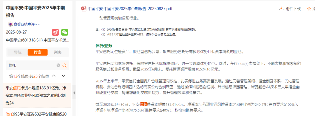 中国平安半年报显示,截至2025年6月末,平安信托受托管理资产规模达10524.16亿元。浦发银行披露的数据也显示,截至2025年6月末,上海国际信托合并管理规模达到11863.69亿元。至此,万亿信托机构增至7家。