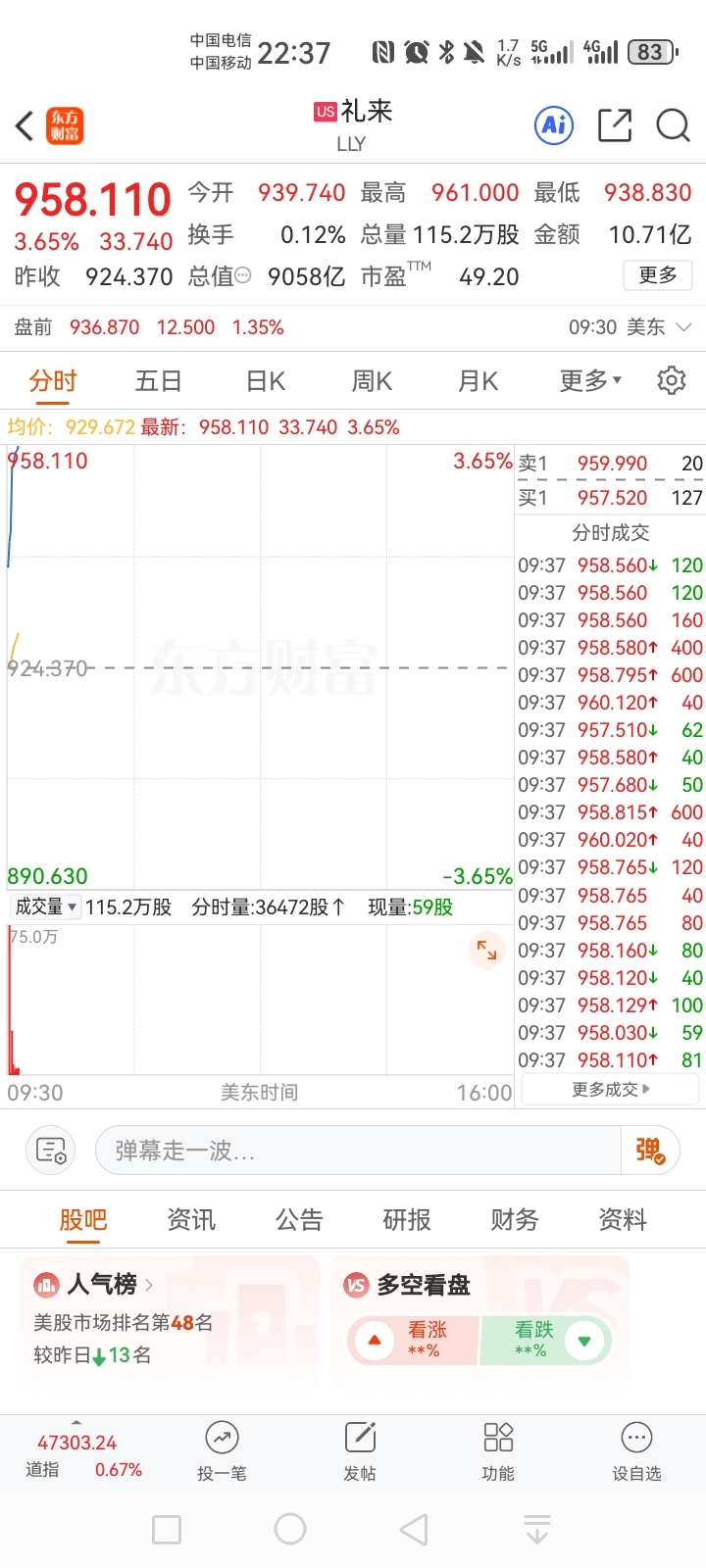 美股礼来市值即将突破1万亿美元,港药多少也要跟着沾点光,坐好扶稳了,准备起飞