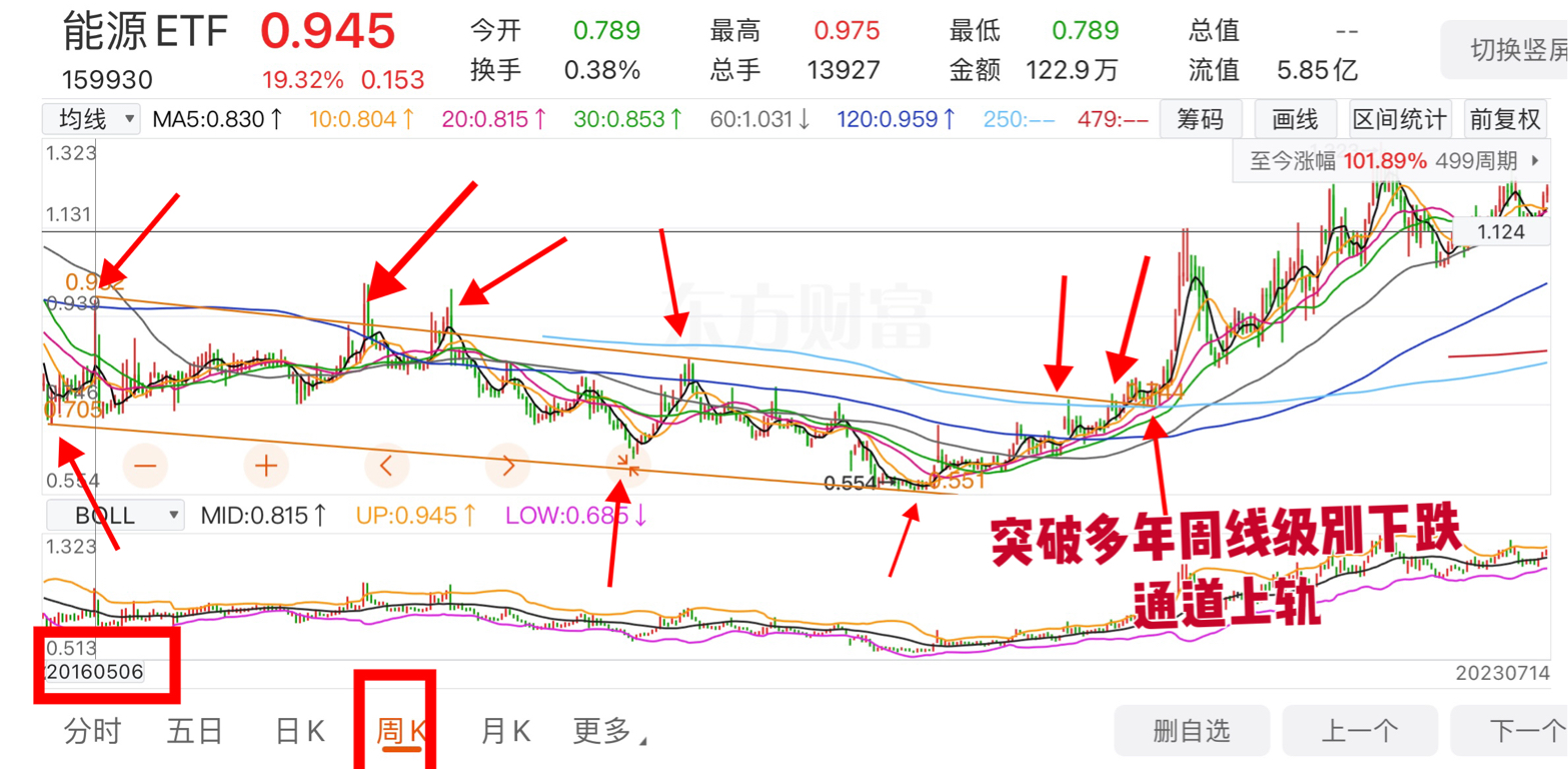 $医疗保健(ISH30178)$ 三张图,老朋友们我要开始讲有色金属etf了,所有如果做白水的和没有做白水准备做的,右侧交易者,可以参考当年上轮牛市2020年时能源etf,以及本轮牛市有色金属etf这两个如今翻几倍的etf去右侧关注酒etf,同样是几年的周线级别下跌通道,如通道被打破,往往是超级行情。