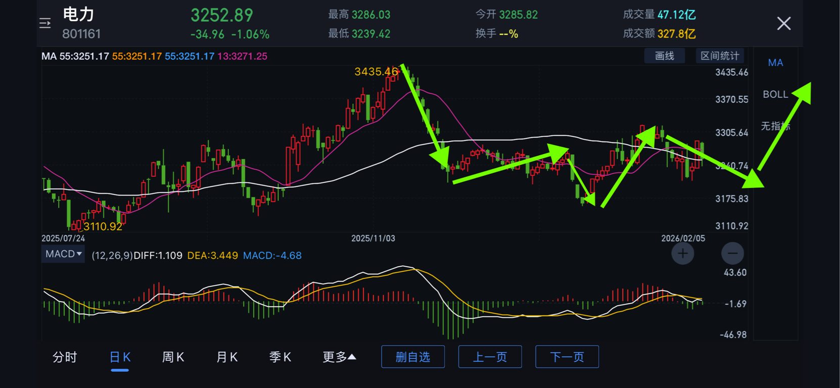 2026025电力板块大致是个头肩形态,而且右肩基本走差不多了,短线可以尝试一下