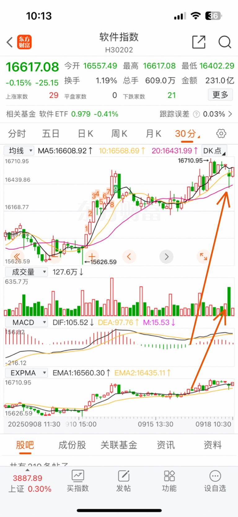 精确回踩30分钟20均线,日线站上20日均线,基本上可以确认向上
