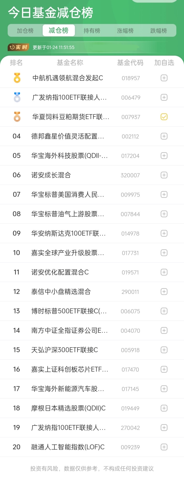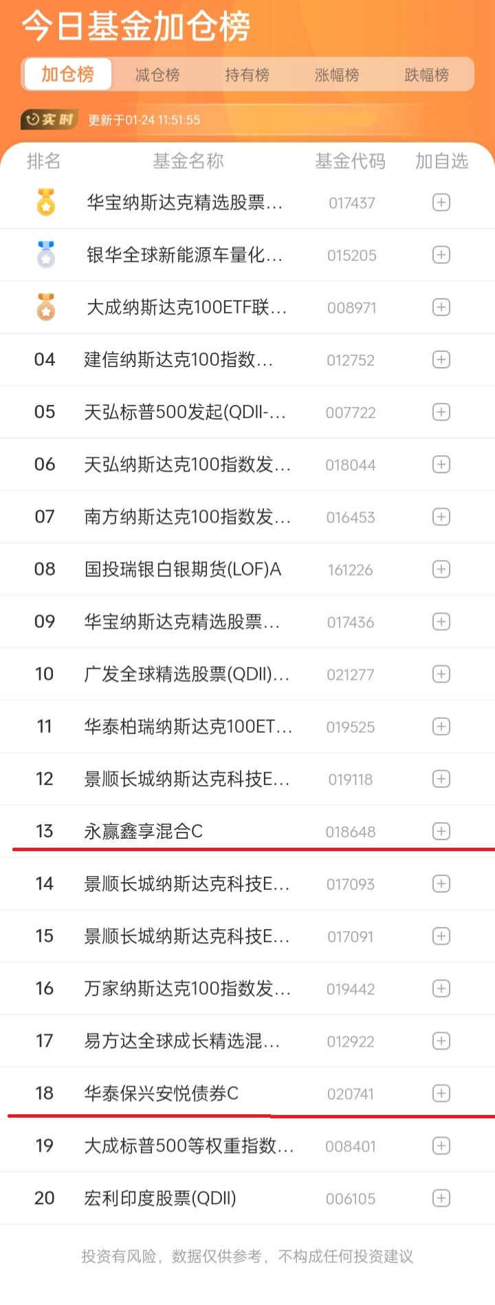 五、债券基金加、减仓榜:(截止到11:30收盘)