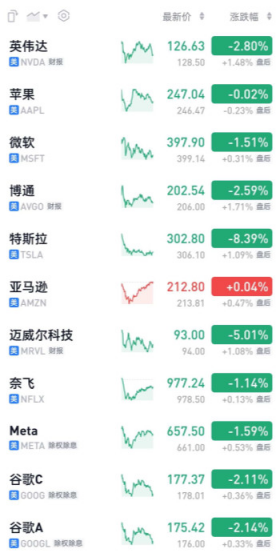 【重仓涨跌】昨日美股三大股指涨跌互现,华宝纳斯达克精选前十大重仓股1涨9跌,美元兑人民币中间价↑0.01%(重仓股涨跌情况仅供参考,不代表当前基金业绩表现,还请以每日更新的实际基金净值为准)