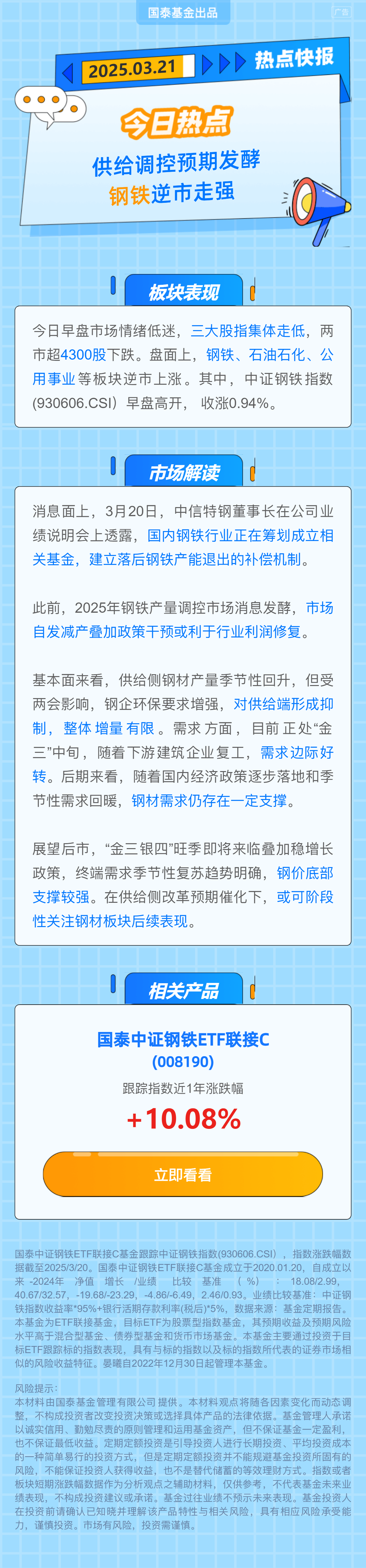 $国泰中证钢铁ETF联接A(OTCFUND|008189)$$国泰中证钢铁ETF联接C(OTCFUND|008190)$$国泰中证钢铁ETF联接E(OTCFUND|022586)$