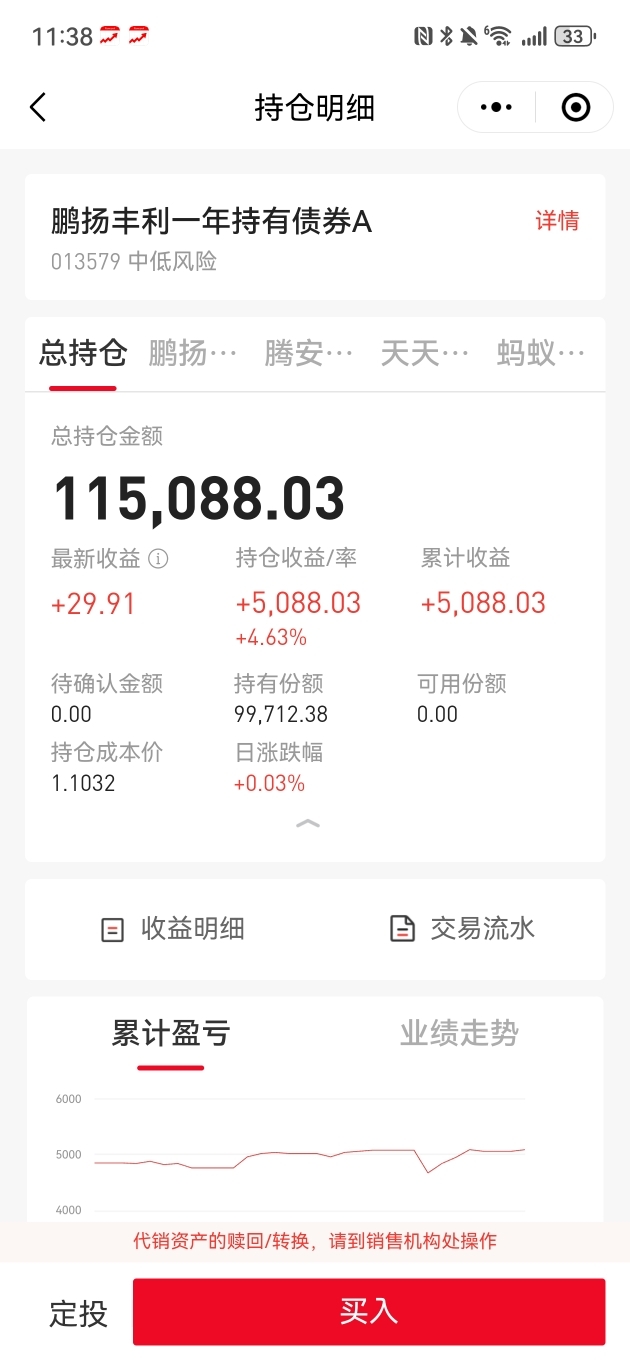 $鹏扬丰利一年持有债券A$ 钟级别开始调整。其他指标完好。仅供参考