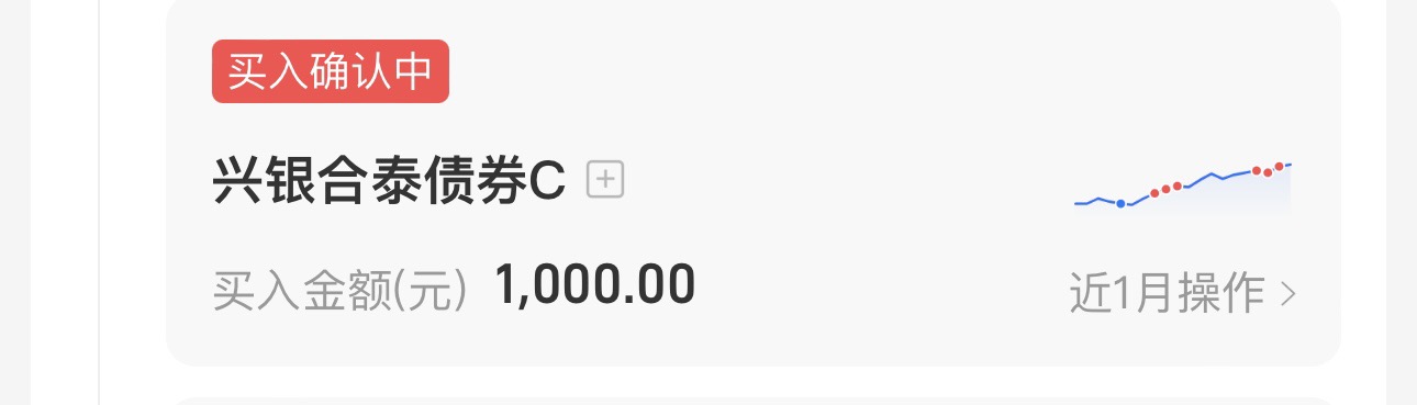 $兴银合泰债券C$ :小王今日上车1000元,昨天又是稳稳的收了两个蛋,最近信用债的行情确实很不错,所以我也要适应行情来进行加仓,从目前的持仓来看,这是一只以信用债为主,基金占比117.50%,利率债占比11.59%,目前持仓也是有城投债的组成,我个人也是比较喜欢城投债为主的信用债基金呢;最重要的一点是因为目前基金经理调仓之后,现在的收益也有了比较明显的提升,目前近一个月收蛋38个,近六个月收蛋238个,这样的业绩我觉得符合我对稳健型基金的要求,而且这个基金的回撤做的也是比较好,属于涨得多碎得少的基金类型,再加上七天就能免费卖出,又多了一份灵活性,所以我今日准备继续定投上车1000元。