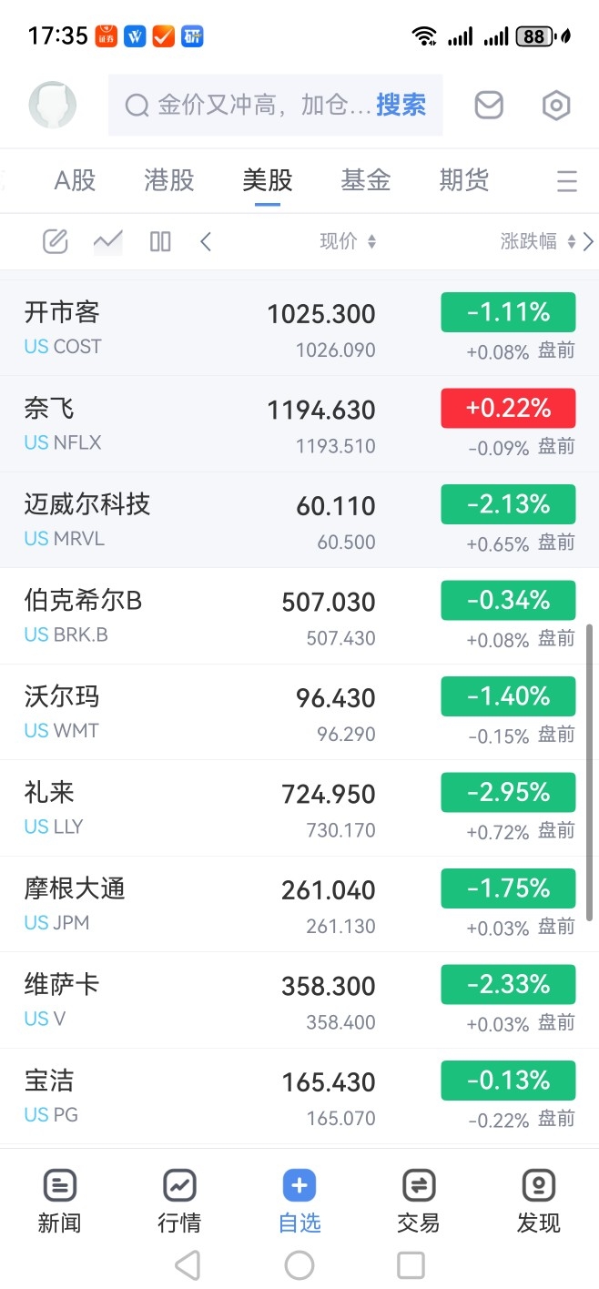 另外补充在目前,观察纳斯达克指数里部分股票在盘前表现多数也是涨的。
