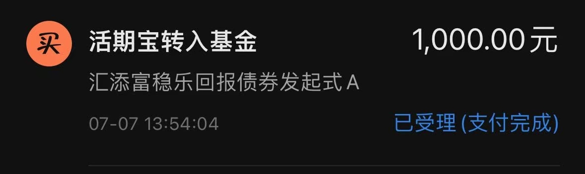 操作二:$汇添富稳乐回报债券发起式A(OTCFUND|018767)$+1000,中波固收+,上周连续两天爆大蛋,近一周收益率达到1.17%,在同类中排名靠前,持仓采用利率债打底+股票增强策略,以81.12%的长久期利率波动操作为主,辅以19.82%的股票仓位分散配置港股互联网和医药等成长资产+A股银行等红利资产,在震荡市场中具有较强的抗跌性和修复弹性。从过往业绩来看,基金已经连续上涨4天,上周四和周五单日就收了40和52个大蛋,表现非常强,近一年收益率为10.23%,业绩大幅超越同类,不仅收益好,回撤还低,近一年最大回撤仅为1.93%,在今年的震荡行情中,优势逐渐凸显,属于攻守兼备型。之前布局的持有收益率已经达到1.37%,长持A类费率更低,今天继续买入1000.