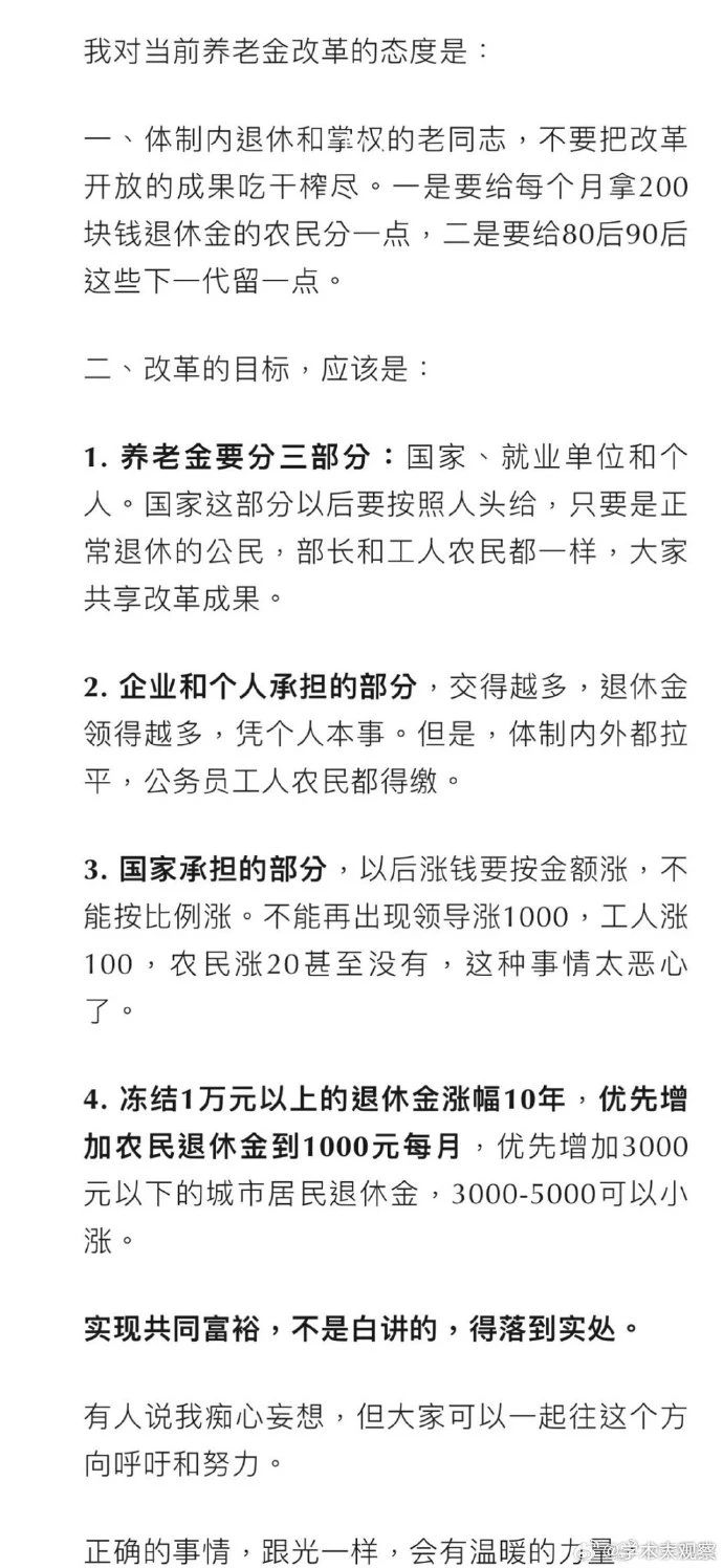 1、养老金如果按照百分比涨,大家的差距会越来越大,但需要耗费的钱少;按照金额涨,大家的差距越来越小。相信未来的政策会做优化,否则十年二十年后,农民养老金和体制内养老金的差额就会很难看。其实你看日本、新加坡这些东亚国家,最后都是在往拉平的方向走。