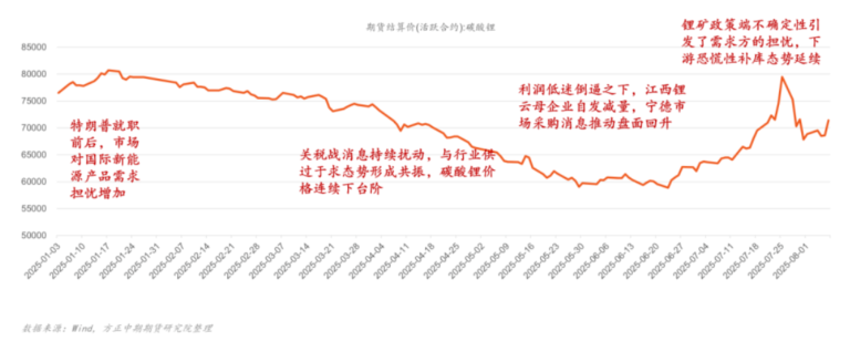 新财富有色首席分析师、民生证券邱祖学表示,周期底部,“反内卷”背景下江西青海矿权扰动带动锂价强势反弹。6月末起,头部企业接货预期逐渐兑现,现货升水结构下,仓单问题持续扰动。同时矿石价格跟随锂盐价格的抬涨而迅速上涨,矿端底部支撑非常明确。7月中旬开始,“反内卷”背景下,江西及青海矿证问题不断引发市场对供给端的担忧,伴随需求端的超预期兑现,碳酸锂价格持续反弹。(来源于民生证券2025年07月31日《锂行业动态报告:供应端干扰加剧,周期底部夯实》)