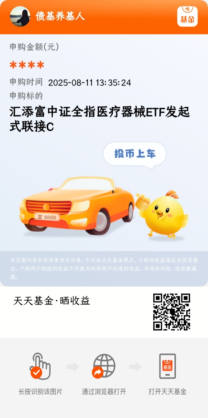 虽然像我持有的$汇添富国证港股通创新药ETF发起式联接C(OTCFUND|021031)$有所回调,但是医疗器械板块持续反弹,估值优势显现。$汇添富中证全指医疗器械ETF发起式联接C(OTCFUND|017633)$跟踪中证全指医疗器械指数,聚焦医疗设备、高值耗材等领域。基金经理董瑾有8年量化经验,管理规模超300亿。行业受创新升级、国产替代和老龄化需求驱动,长期潜力看好。医疗设备招标数据回暖,高值耗材集采出清带来估值修复机会。另外脑机接口等新兴技术为行业注入新动能。