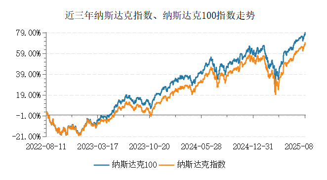 数据来源:choice,截至2025/08/12,纳斯达克100代码为NDX.GI,纳斯达克指数代码为NDAQ.O。指数过往走势不预示未来,亦不预示基金走势。