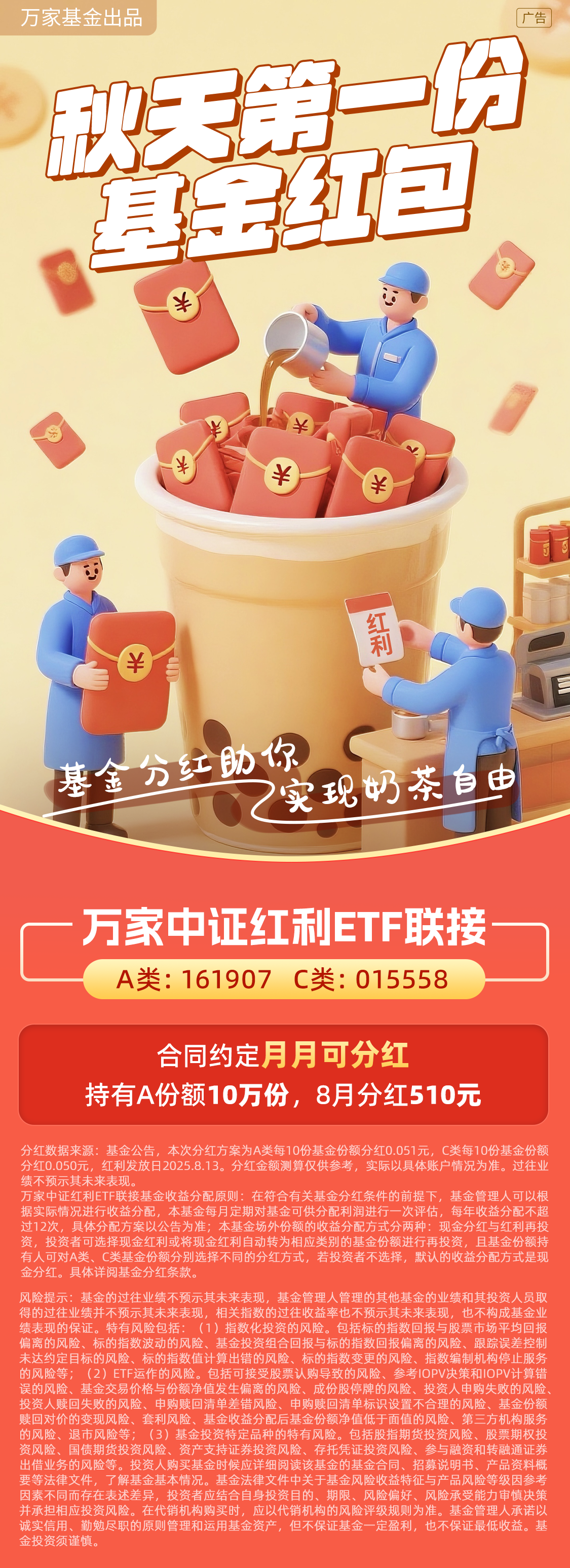 万家中证红利联接基金,8月分红来啦~秋天第一份基金红包!