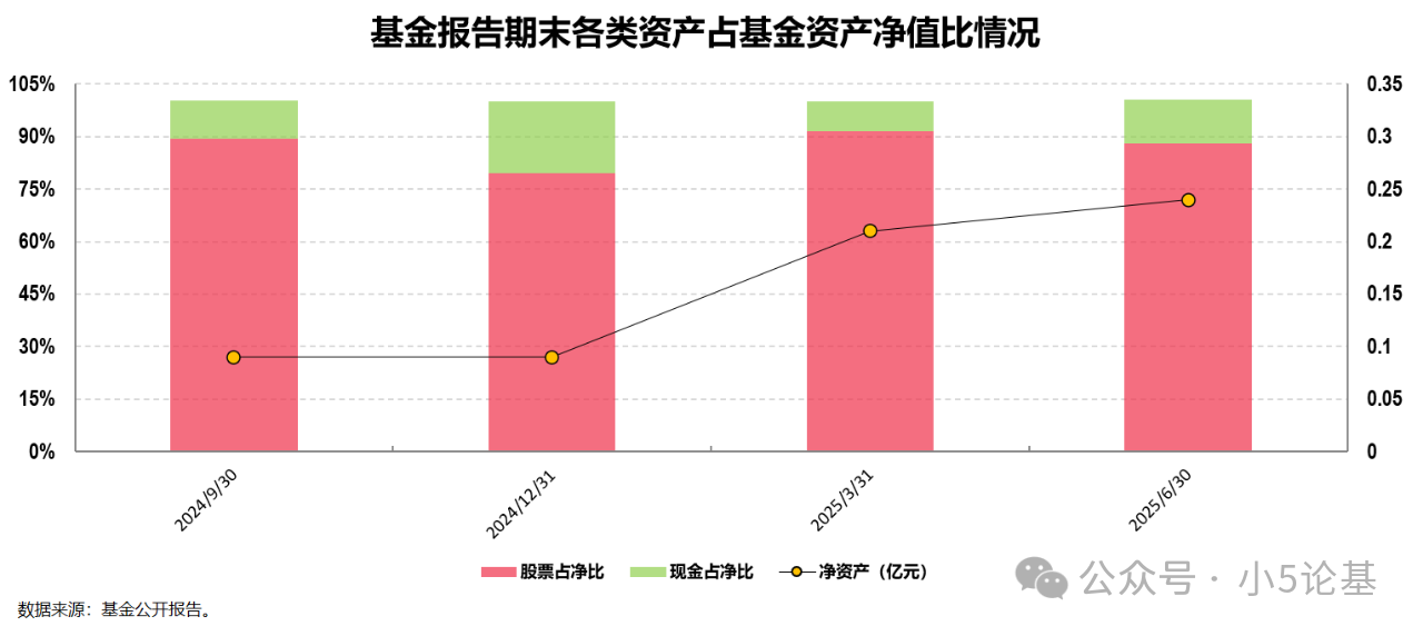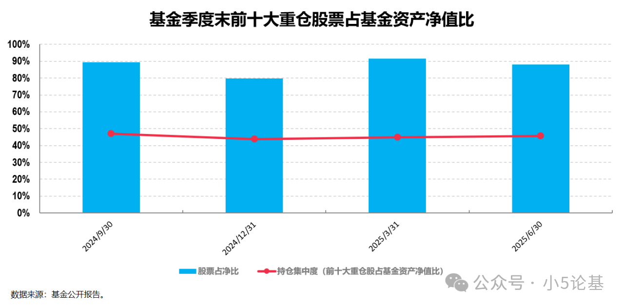 在实际的投资运作中,我们可以看到,股票仓位平均都保持在87%以上高仓位运作,最新一期的2025年二季报显示其股票仓位为88.05%。