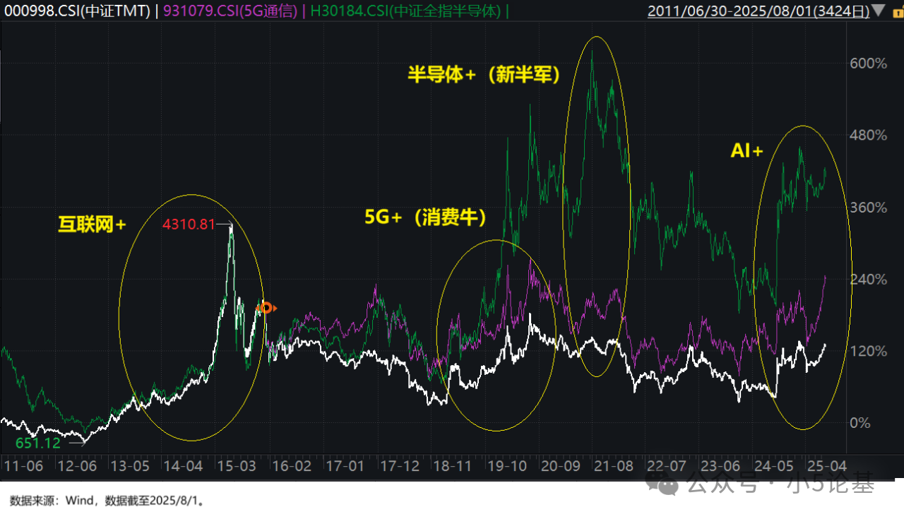 不管是十年前2014年末、2015年初那轮大牛市的互联网+,还是5年前2019年到2021年那轮牛市中的5G和半导体,抑或是上一年三季度末开始的这轮牛市中的人工智能,科技板块总能以某种方式成为市场行情的一大主线引领市场。