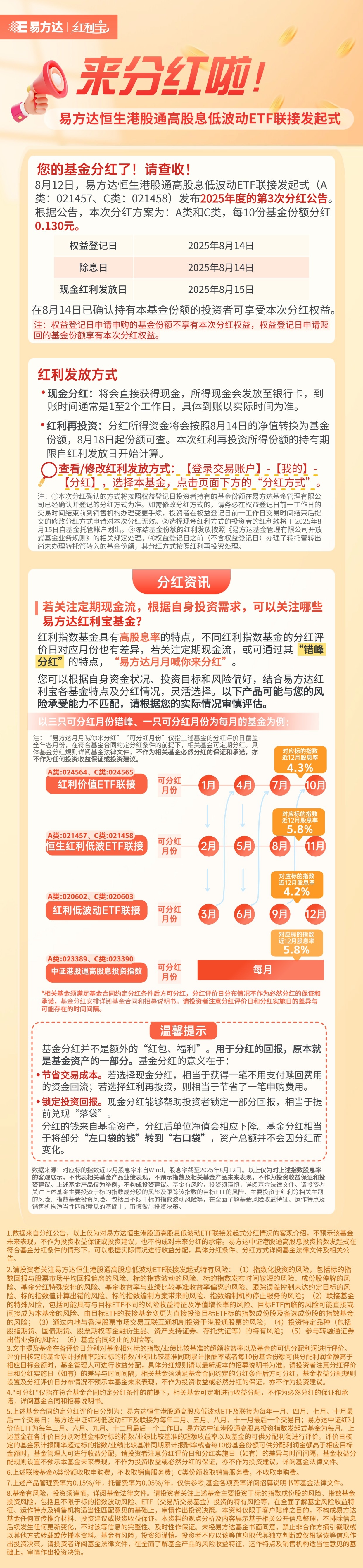 分红提醒 | 易方达恒生红利低波2025年度第3次分红