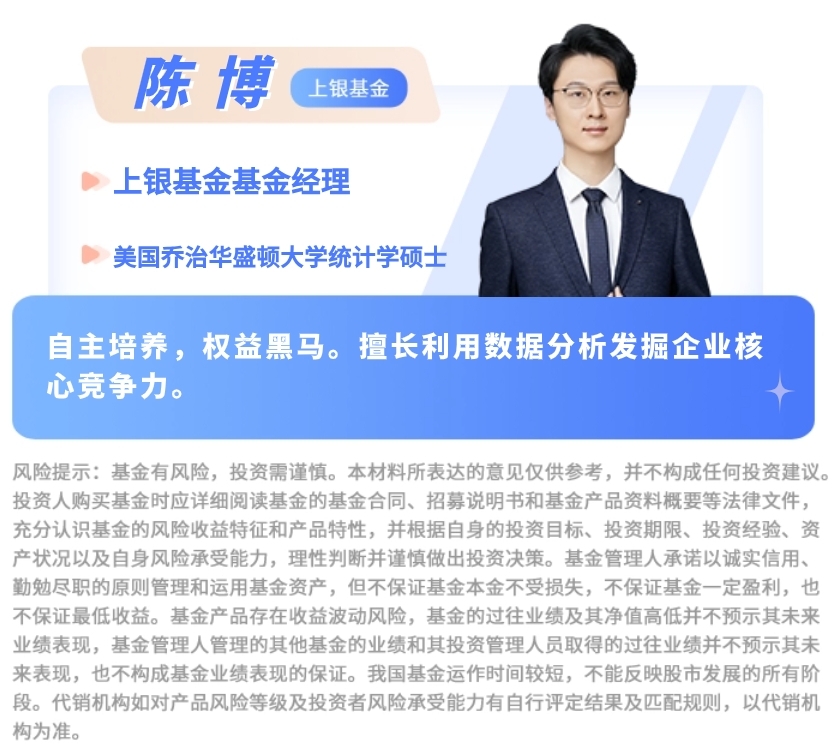 风险提示:基金有风险,投资需谨慎。本内容中的信息及投资组合或所表达的意见仅供参考,并不构成本公司及基金经理的任何投资建议,投资者根据自己的风险承受能力选择适合自己的基金。投资人购买基金时应详细阅读基金的基金合同、招募说明书和基金产品资料概要等法律文件,全面了解产品风险,在了解产品情况及销售适当性意见的基础上,根据自身的投资目标、投资期限、投资经验、资产状况以及风险承受能力等因素,理性判断并谨慎做出投资决策。基金管理人承诺以诚实信用、勤勉尽职的原则管理和运用基金资产,但不保证基金本金不受损失,不保证基金一定盈利,也不保证最低收益。基金产品存在收益波动风险,基金的过往业绩及其净值高低并不预示其未来业绩表现,基金管理人管理的其他基金的业绩和其投资管理人员取得的过往业绩并不预示其未来表现,也不构成基金业绩表现的保证。我国基金运作时间较短,不能反映股市发展的所有阶段。行业、指数过往业绩不代表基金业绩表现,也不作为基金未来表现的承诺。
