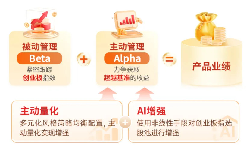 它就像为创业板投资装上了“智慧大脑”,既能紧跟板块成长红利,又能通过量化策略力争实现超额收益,追求“1+1>2”的效果。