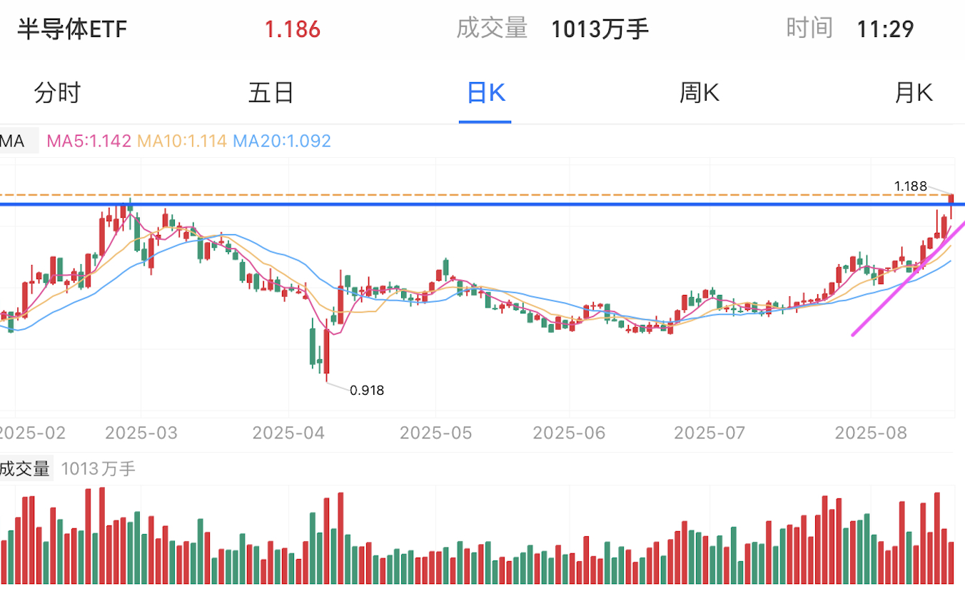 半导体、房地产和光伏这三个板块近期相对较弱,一直在底部盘整。最近几日大幅反弹,均已突破压力位,如果短期不跌回,那么打开通道,开启新的行情。