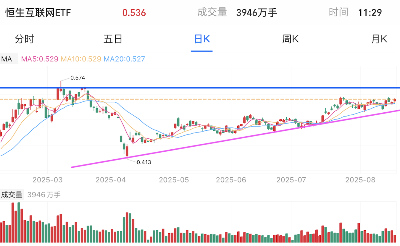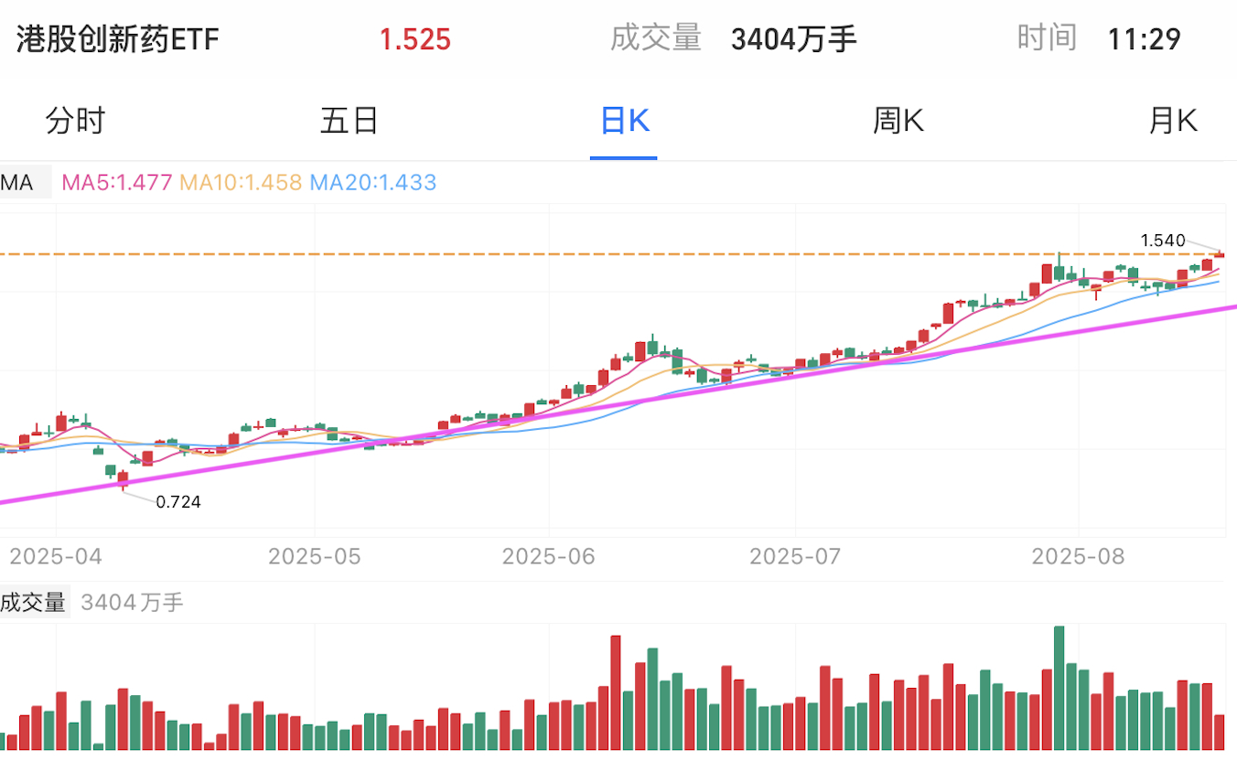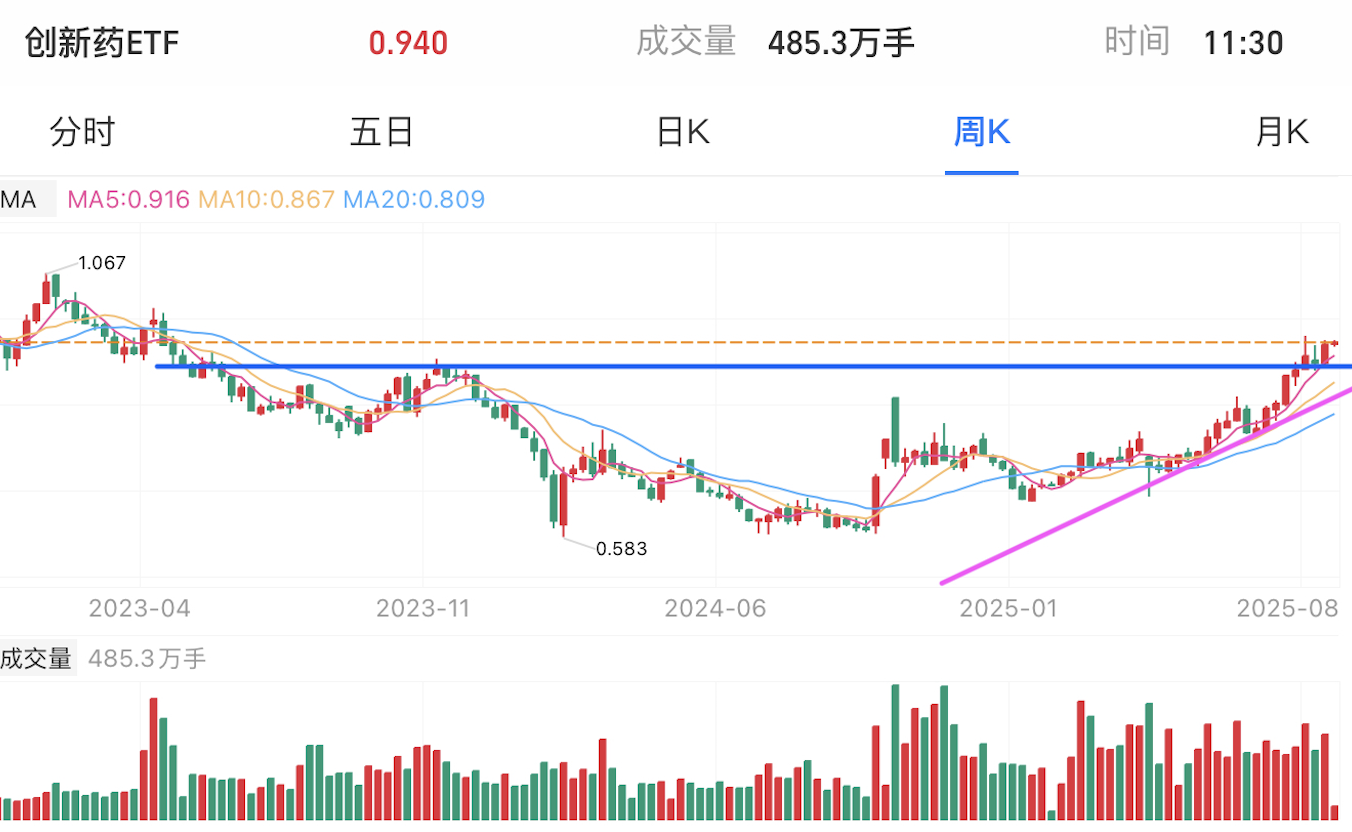 创新药和港股医药近期有较大行情,最近在大幅上涨后有力竭迹象,目前横盘整理中。短暂调整后,这几日再次发力,今日似乎突破压力位,它可能再次进入上行模式。