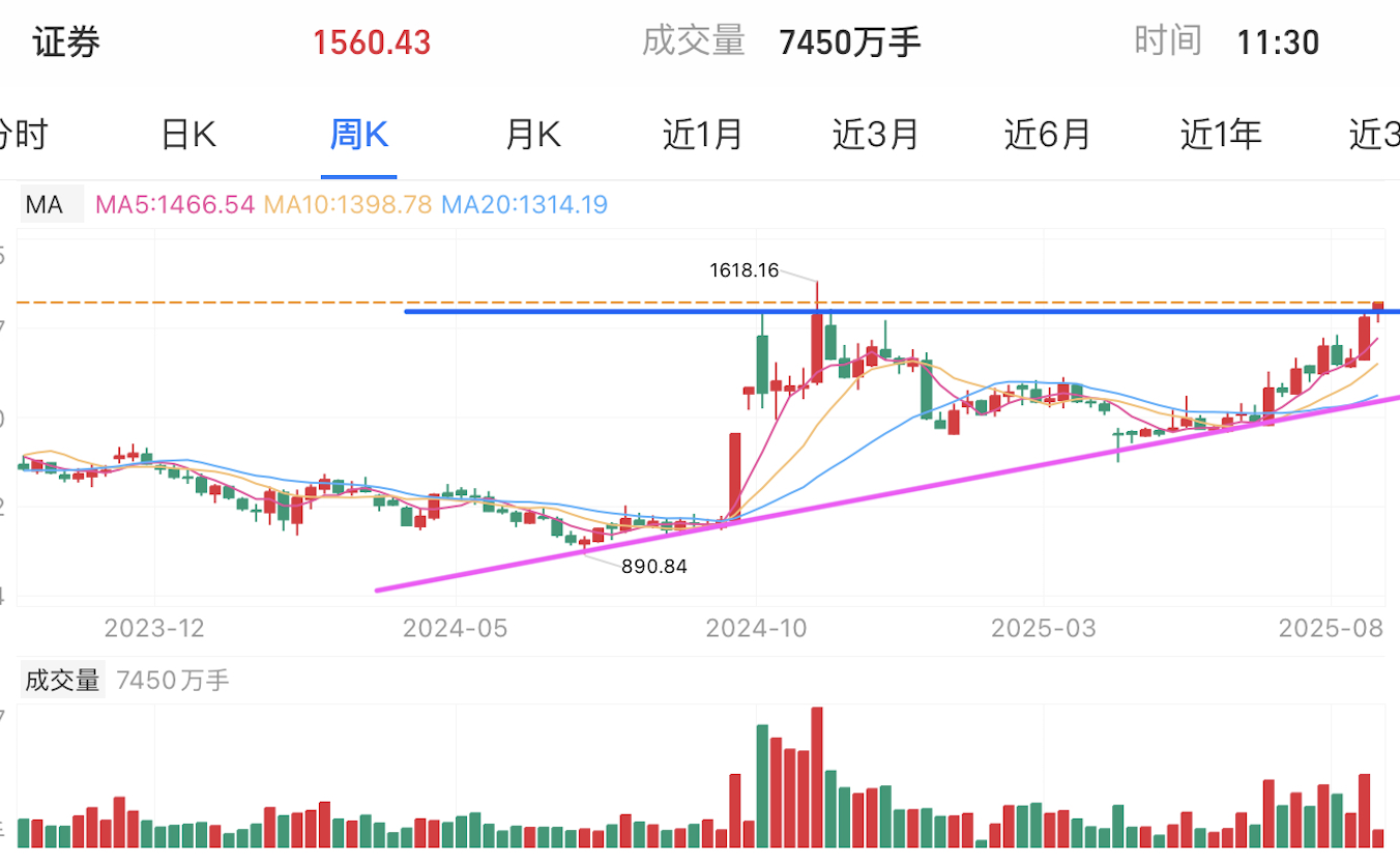 证券走势紧跟上证指数指数,已经突破10月份高点附近。证券经常与大盘同步,如果大盘不回调,它大概率跟随指数上行。